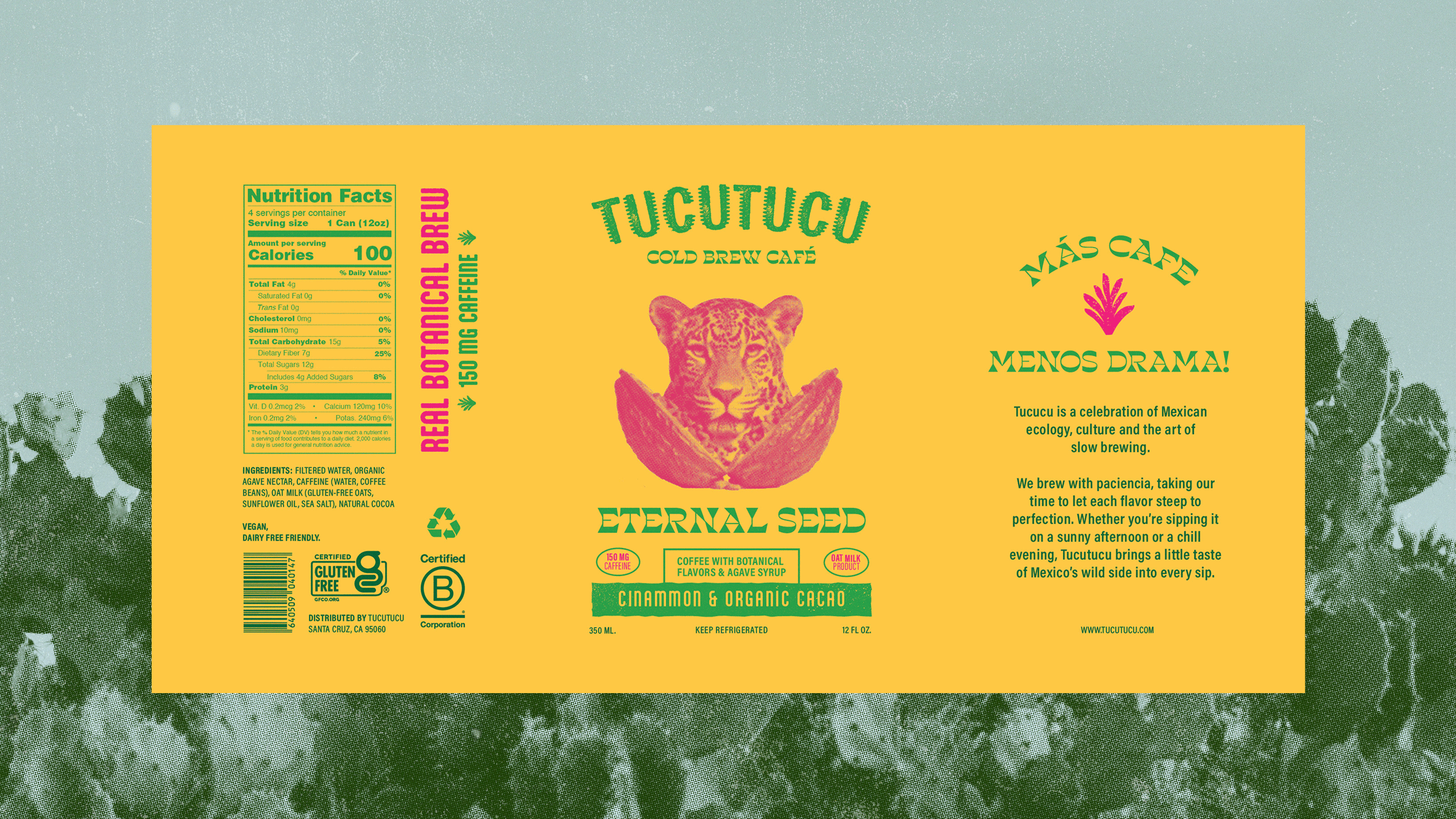 A closer look at cold brew revealed a world caught up in beer aesthetics, begging for a twist that’s off-beat, wild, and health-conscious. Tucucucu brings slow-brewed, dairy-free coffee to life with botanical flavors that celebrate Mexico’s ecology and culture.